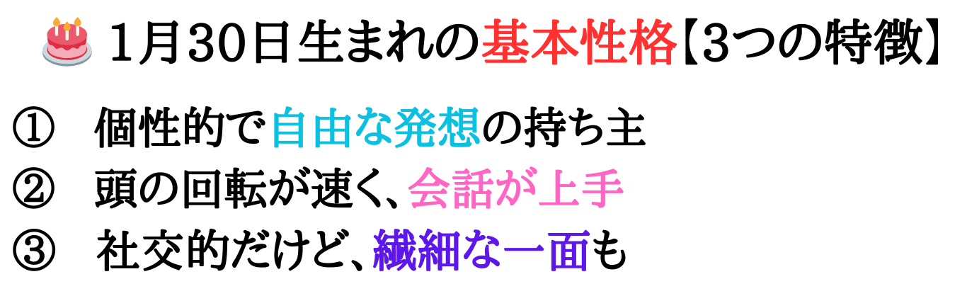 1月30日生まれの基本性格は知性と個性の融合タイプ